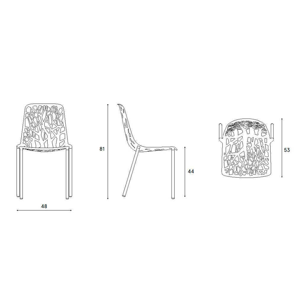 Silla apilable de aluminio lacado con patrón gráfico. Dimensiones: 48x53x81h cm.