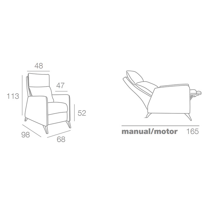 Sillón con sistema relax y patas de madera de roble. Dimensiones: 68x98x113h cm.