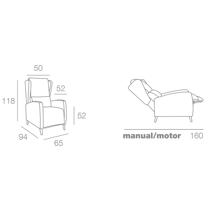 El sillón relax Viena está disponible en relax manual con sistema de empuje y sistema relax con 1 motor, con botonera en el brazo.