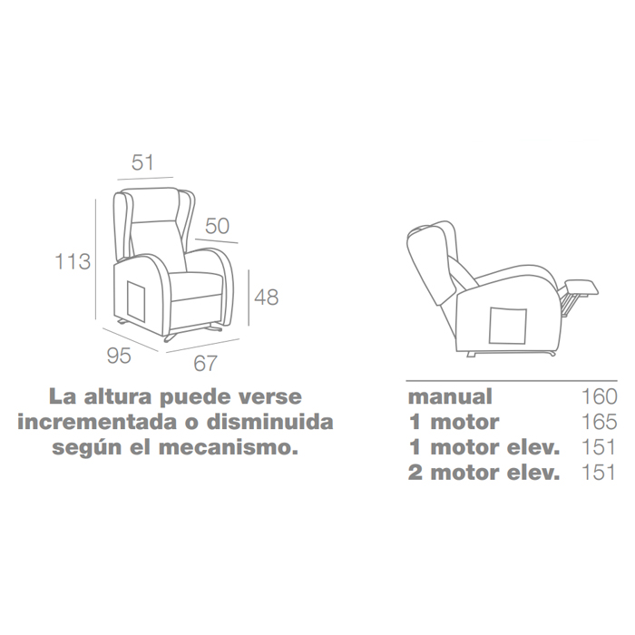 Sillón relax Bilbao en mecanismo manual, relax 1 motor, relax 1 motor elevador y 2 motores con elevador.