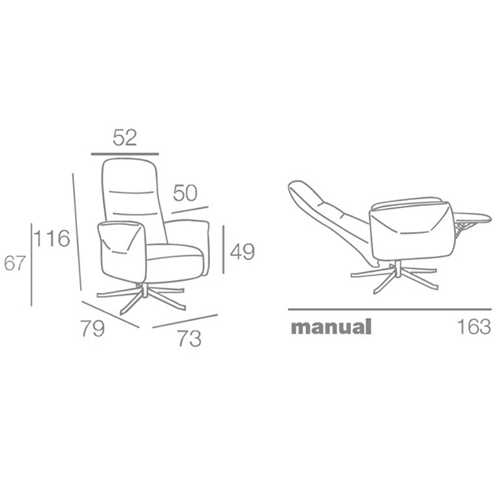 El sillón está disponible en relax manual con sistema de empuje y cabezal reclinable.