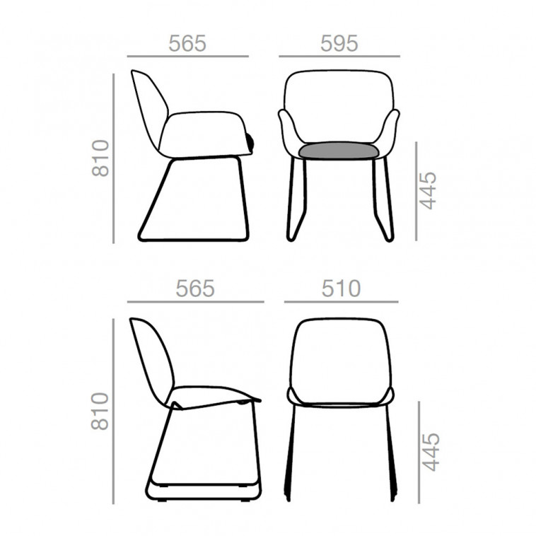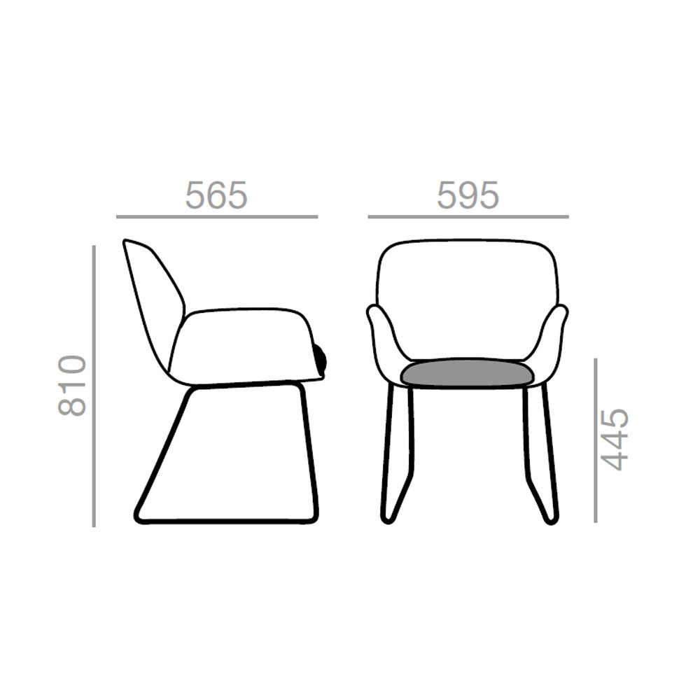 Silla tapizada de termopolímero en base estilo patín de acero.