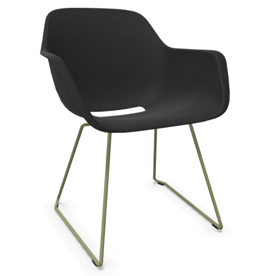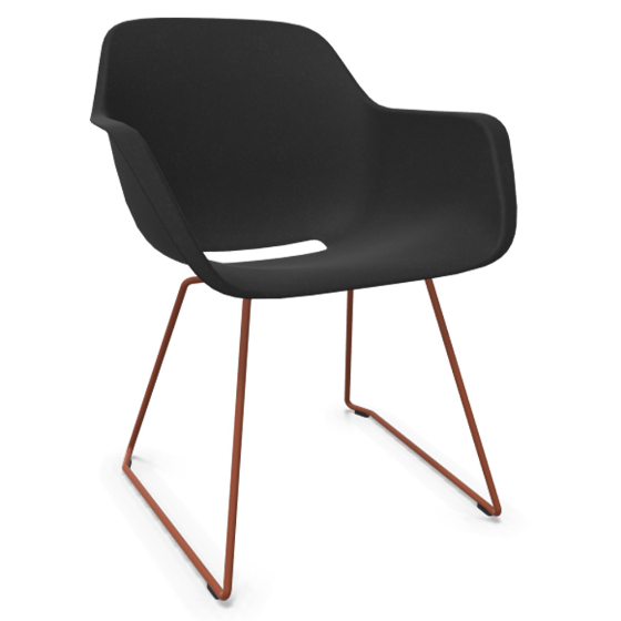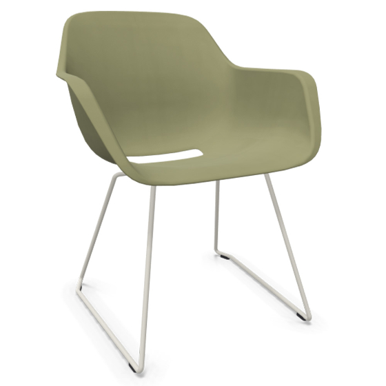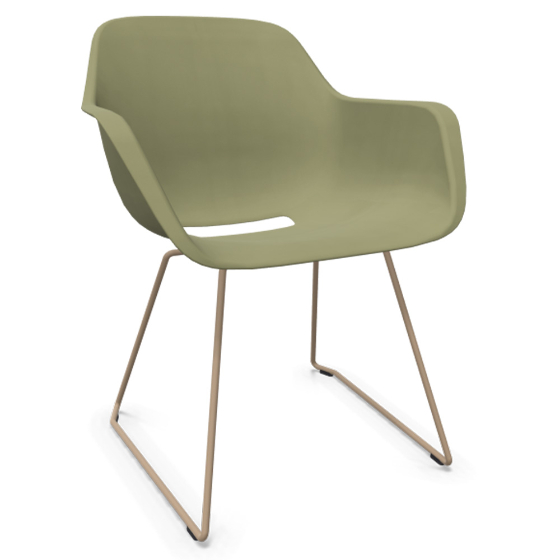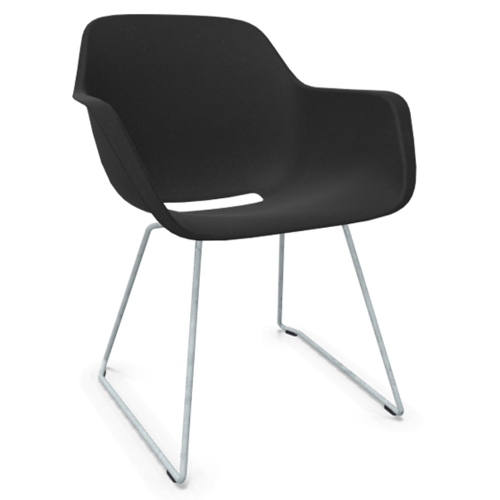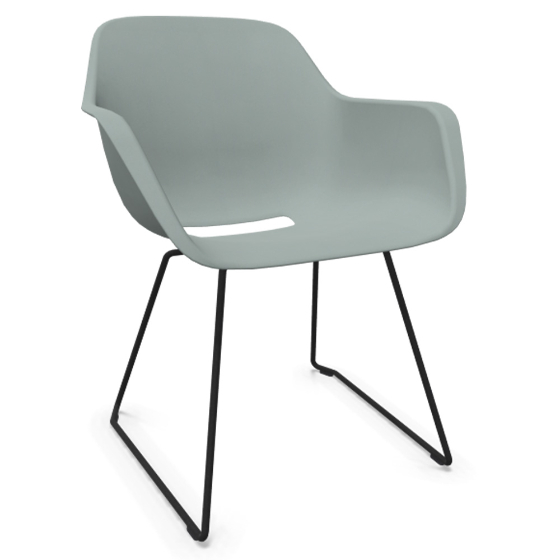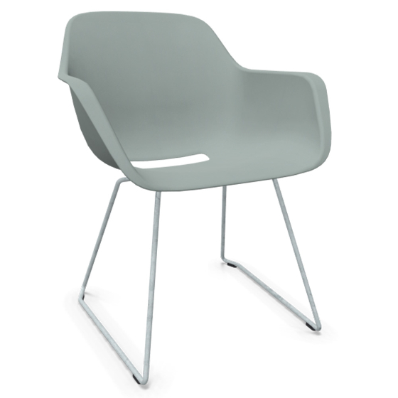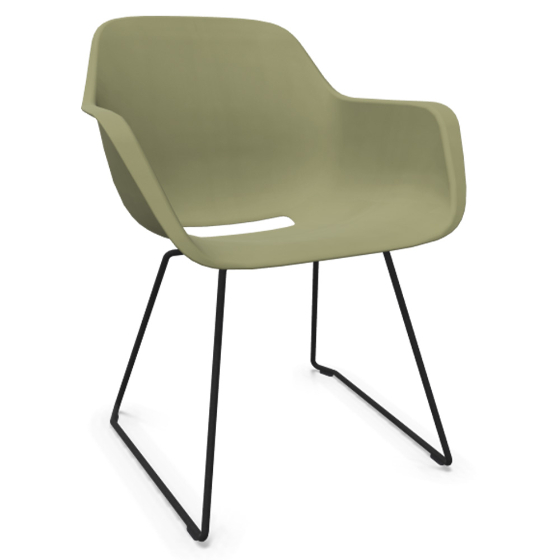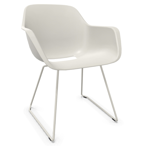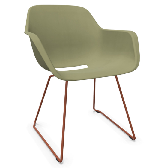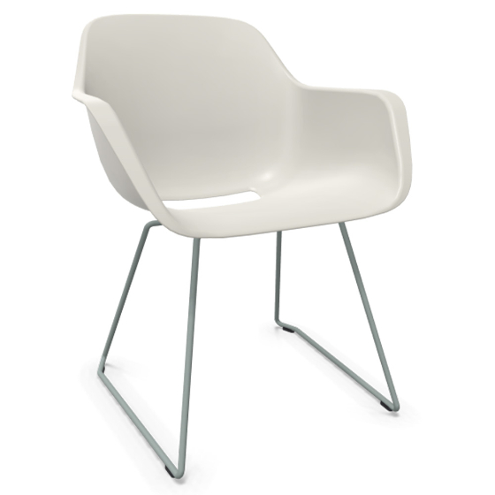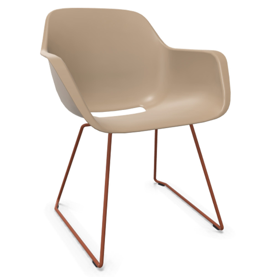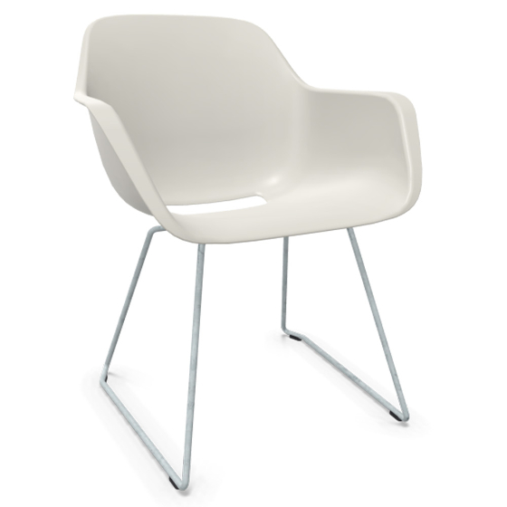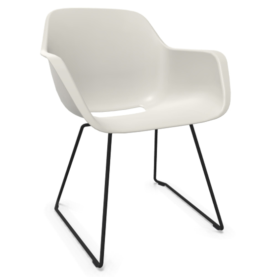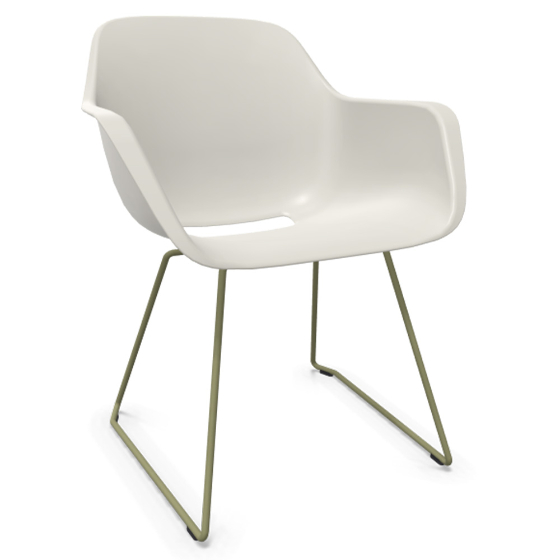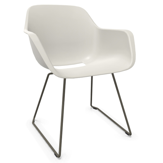 Silla exterior brazos en polipropileno base patín de acero. Dimensiones: 63x62x82h cm.