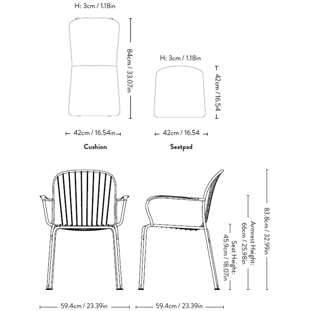 Sillón outdoor en acero con recubrimiento en polvo. Dimensiones: 59,4x59,4x83,8h cm