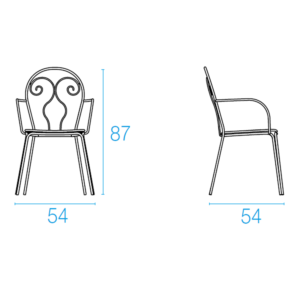 Butaca con estructura de acero pintado con líneas en su respaldo. Dimensiones: 54x54x87h cm.