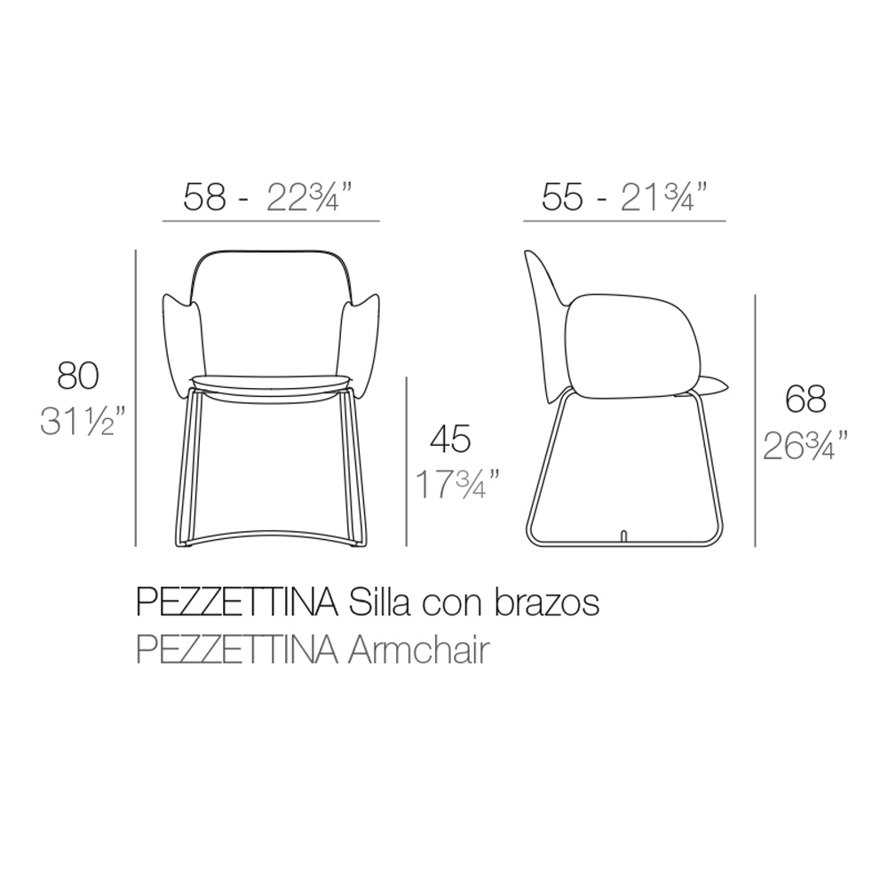 Sillón con brazos de polietileno y base de patín. Dimensiones: 58x55x80h cm.