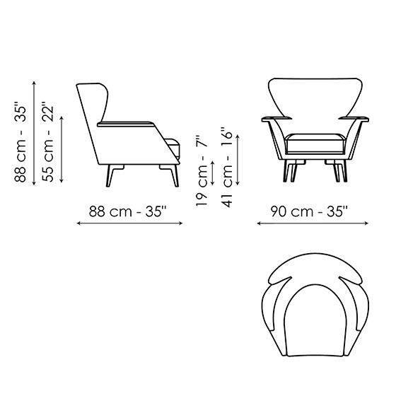 Se propone en dos modelos: con respaldo bajo (Lovy low) y con respaldo alto, que retoma las líneas de las butacas características del siglo siglo XVIII (Lovy bergère).