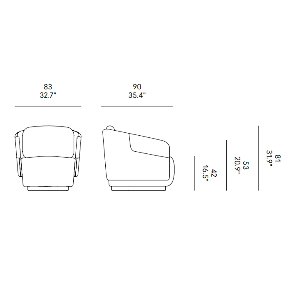 Sillón tapizado en tejido o ecopiel con brazos en ecopiel. Diseño de Samuel Wilkinson