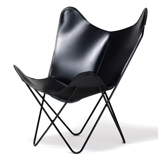 Diseñada en 1938, la icónica silla BKF se inspira en la naturaleza. La pieza de cuero toma la forma de una mariposa —de ahí el origen de su nombre en inglés, Butterfly Chair.