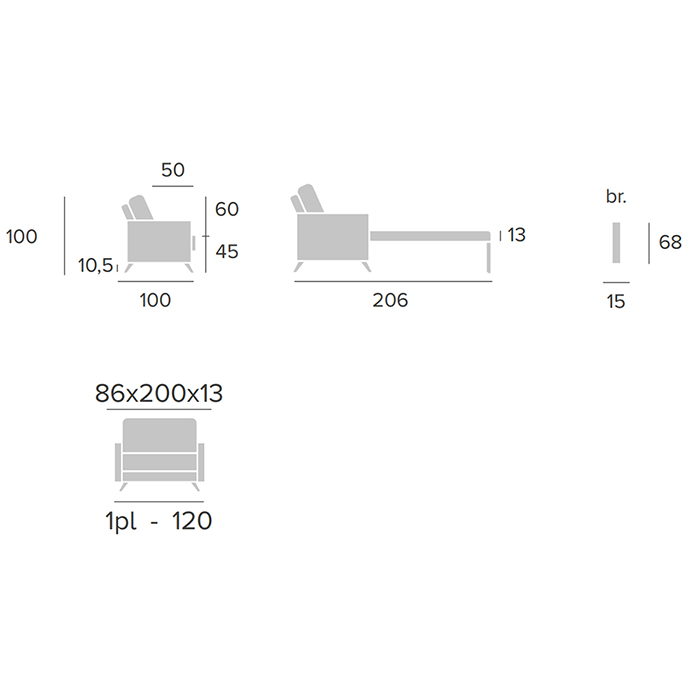 Sillón cama Simón tapizado con armazón con patas de madera de haya barnizada.