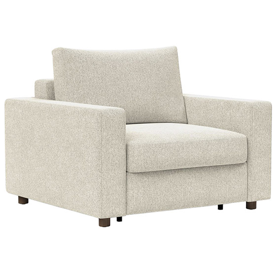 Sillón cama con reposabrazos estándar y patas de roble. Dimensiones: 127x109x70h cm.