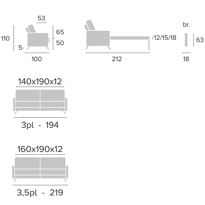 Sofá cama Grey de 3 o 3,5 plazas tapizado con patas en acabado negro.