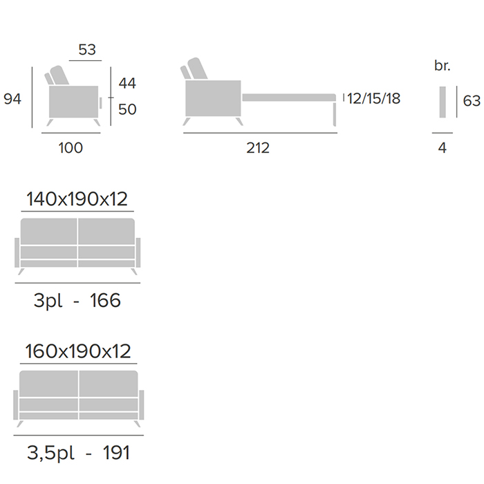 Sofá cama Loki de 3 o 3,5 plazas tapizado con ribete y armazón de madera.