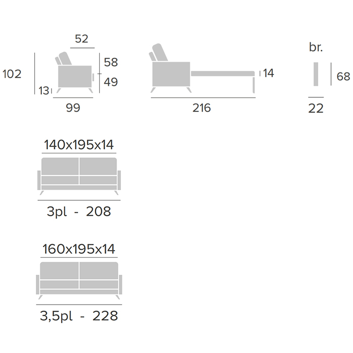 Sofá cama Salomé de 3 o 3,5 plazas tapizado con patas de madera barnizada.