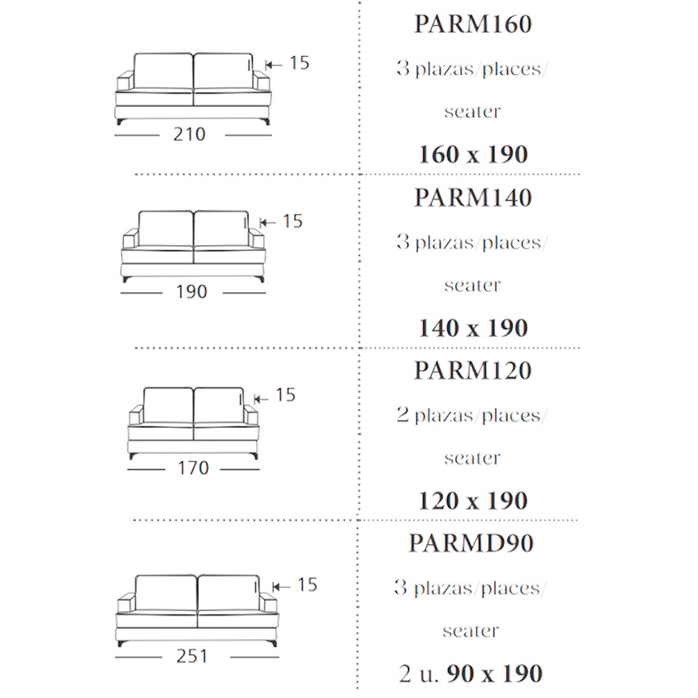 El sofá Parma dispone de una apertura de rotación que permite que salga una cama sin tener que quitar los cojines de asiento o respaldo.