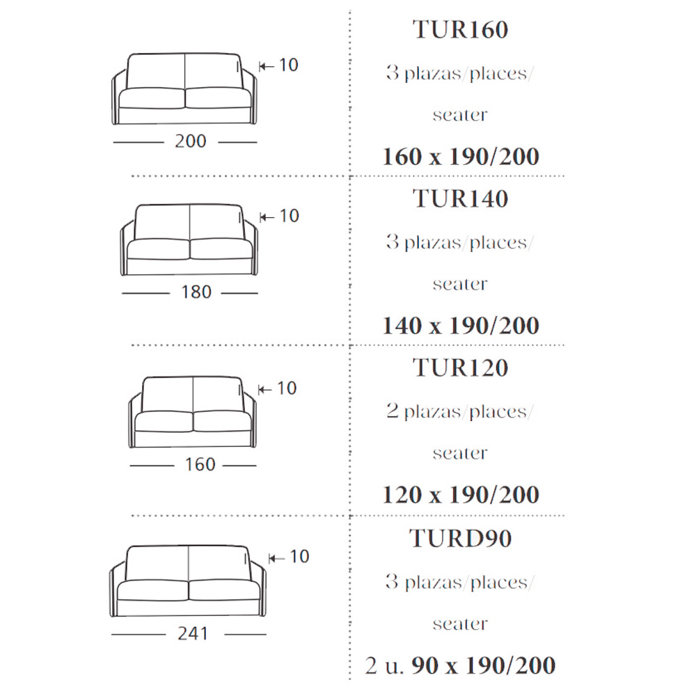 El sofá Turin dispone de una apertura de rotación que permite que salga una cama sin tener que quitar los cojines de asiento o respaldo.
