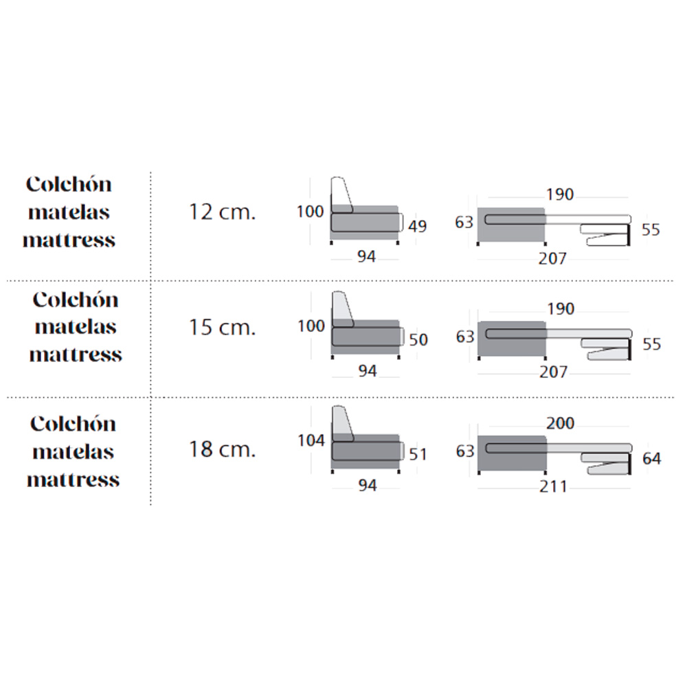 La apertura y cierre del mecanismo del sofá cama se debe de realizar sin ropa de cama.