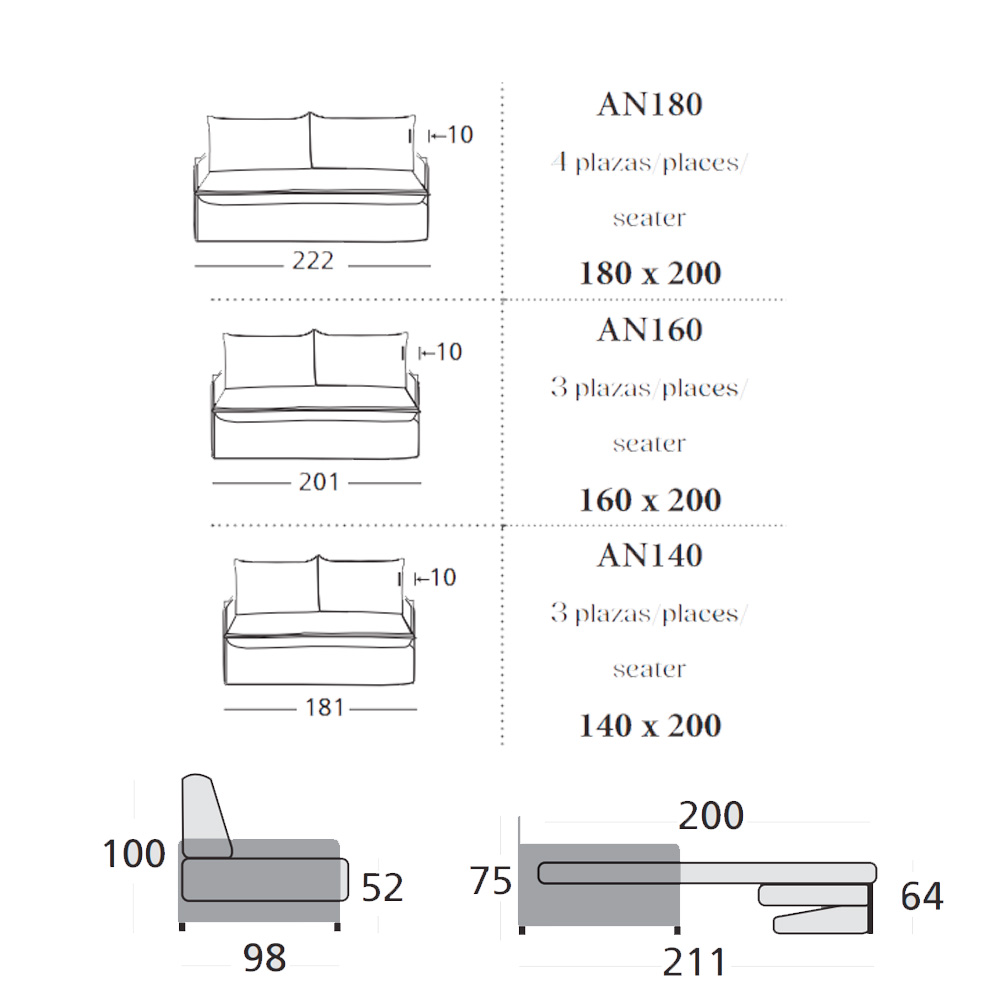 Sofá cama con sistema de apertura italiana totalmente desenfundable.