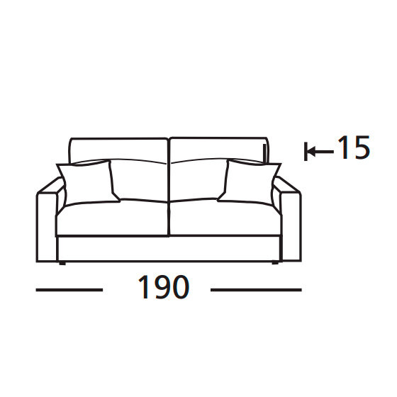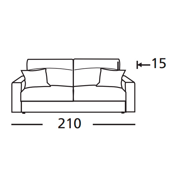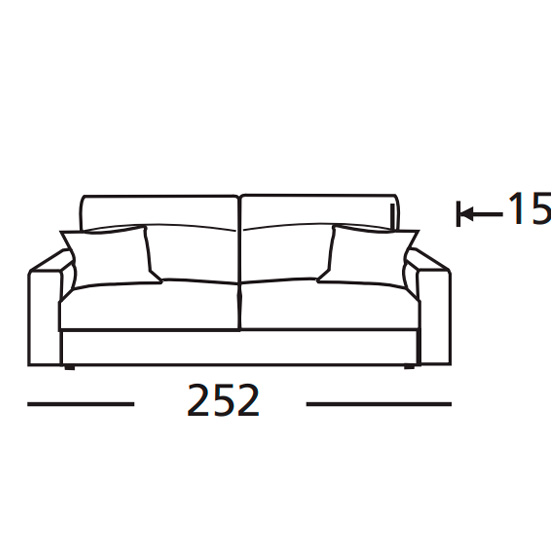 Sofá cama con apertura italiana, brazos anchos y patas de madera o cromadas.