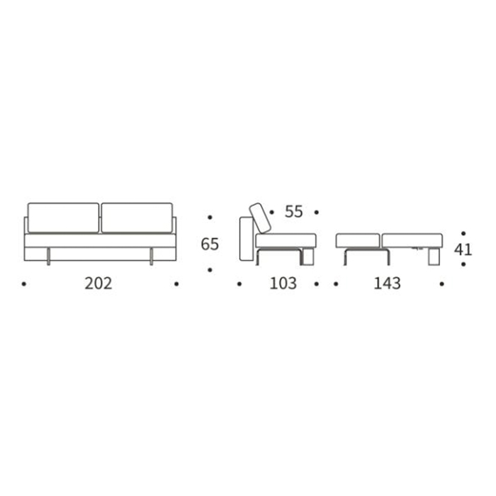 • Sofá: 202x103x65h cm.