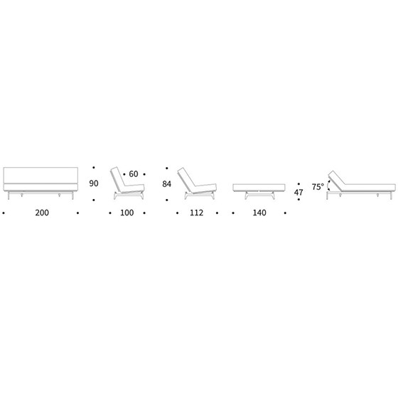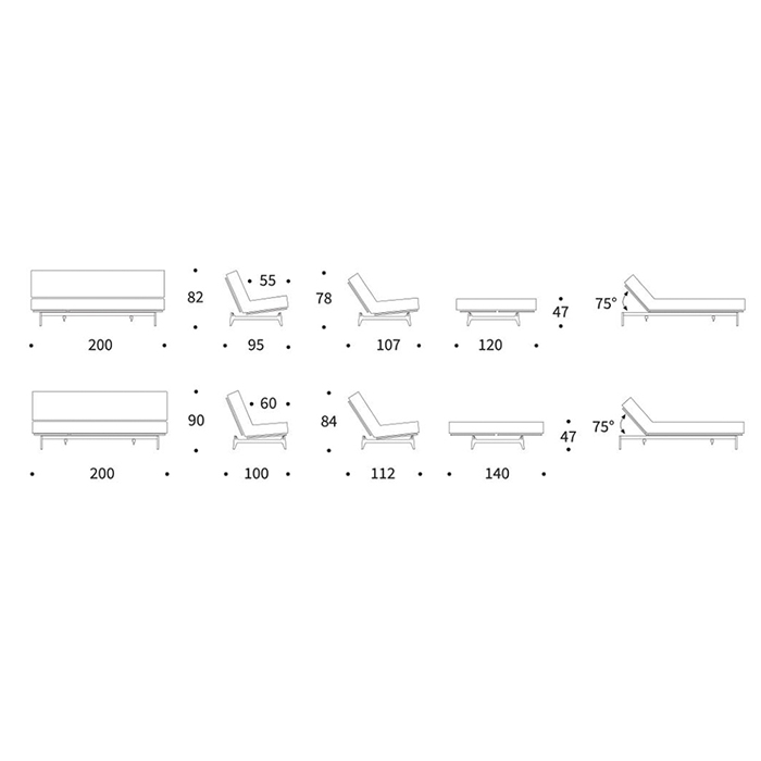 • Aslak 140 cm - Sofá: 200x100x90h cm. / Cama:140x200x47h cm. Altura Colchón: 18h cm.