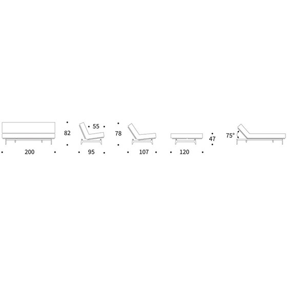 • Aslak 120 cm - Sofá: 200x95x82h cm. / Cama:120x200x47h cm. Altura Colchón: 18h cm.