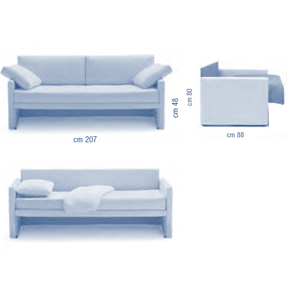 Sofá cama individual tapizado. Dimensiones: 207x88x80h cm.