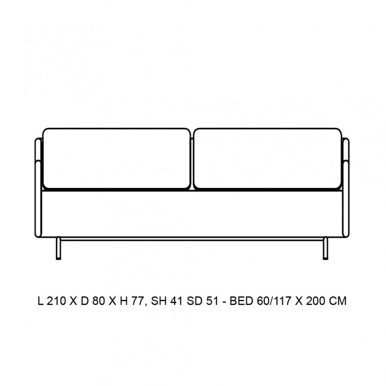 Sofá cama de 2 plazas con base de acero. Diseño de Busk + Hertzog.