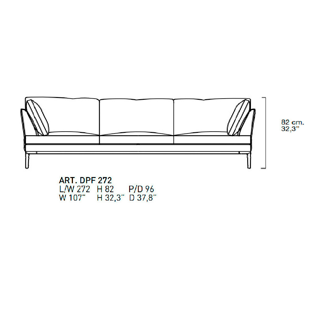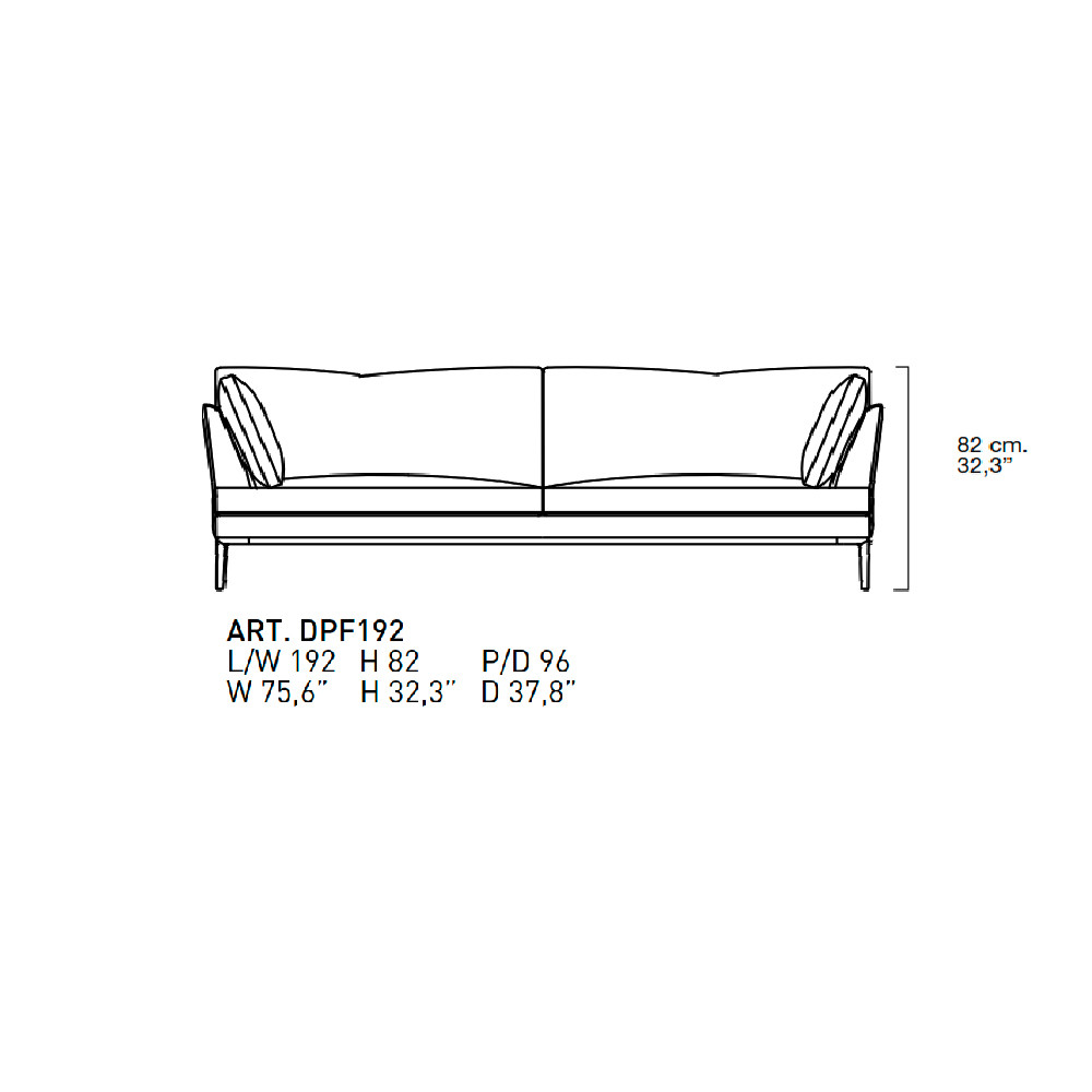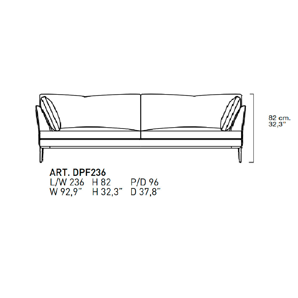 Portofino es un elegante sofá que cuenta una base tipo bastidor perfiles de aluminio fundido y patas de aluminio fundido lacado.