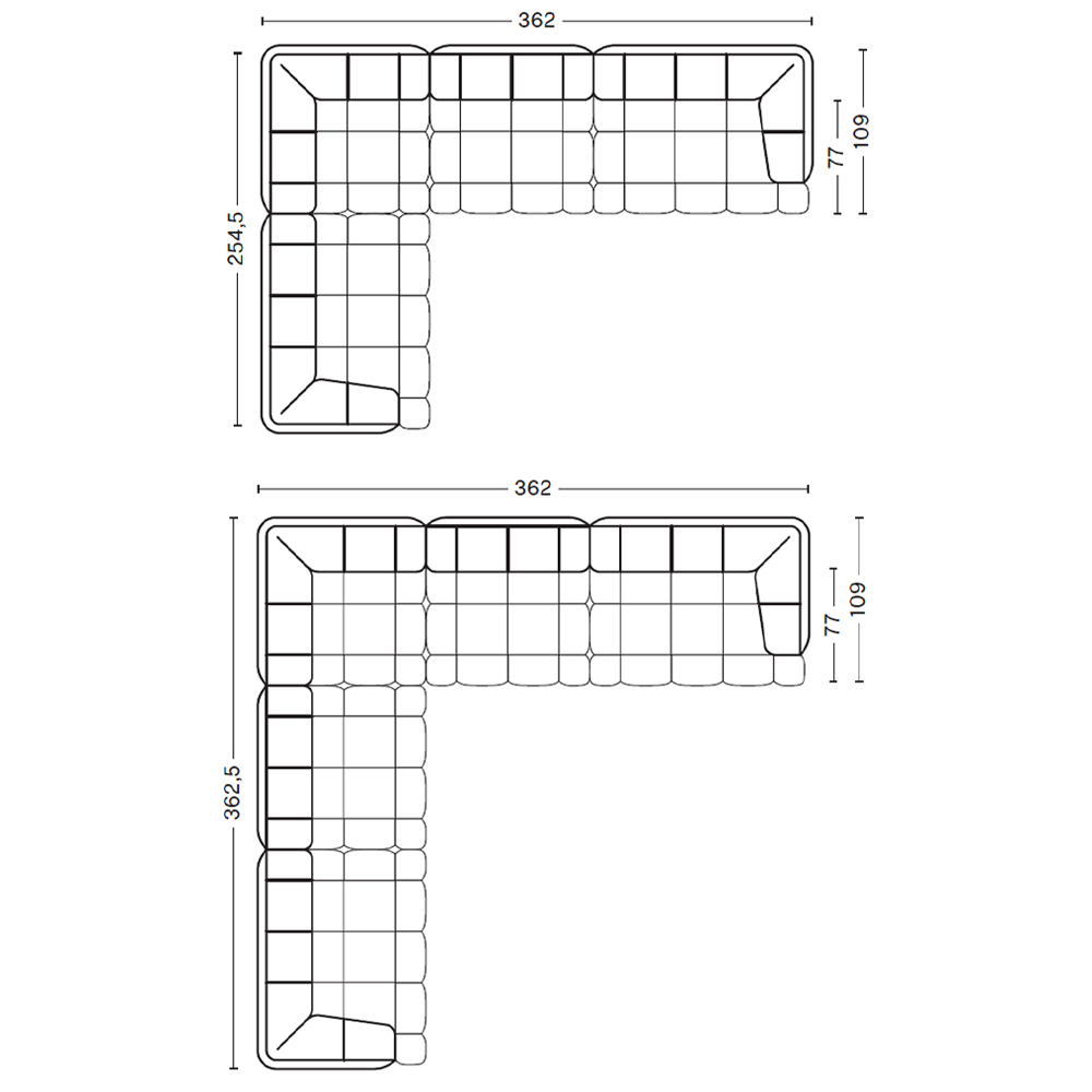 El sofá esquinero Quilton combina comodidad y funcionalidad en un diseño modular que se adapta a espacios domésticos y públicos. Su estructura está fabricada con madera certificada FSC, espuma de PU y un sistema de muelles, ofreciendo un soporte robusto y duradero. Tapizado completo en tela o cuero, con detalles acolchados que realzan la suavidad de sus asientos. Las patas son de haya maciza tintada en negro. Diseñado por Doshi Levien, este sistema permite crear configuraciones personalizadas gracias a sus módulos versátiles y dimensiones generosas, ideales para vivir, trabajar o relajarse.