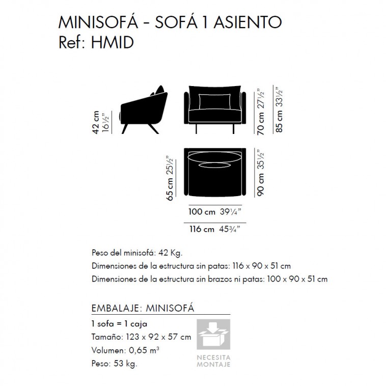Todos los tapizados son desenfundables y cuenta con unas patas de aluminio inyectado lacada en polvo color negro.