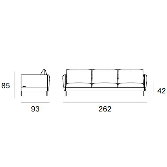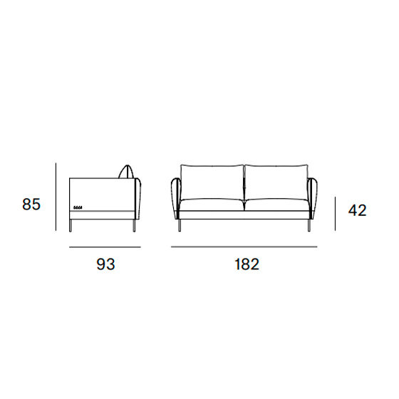 Sofá tapizado de dos o tres plazas con patas de metal. Diseño de estudi{H}ac.