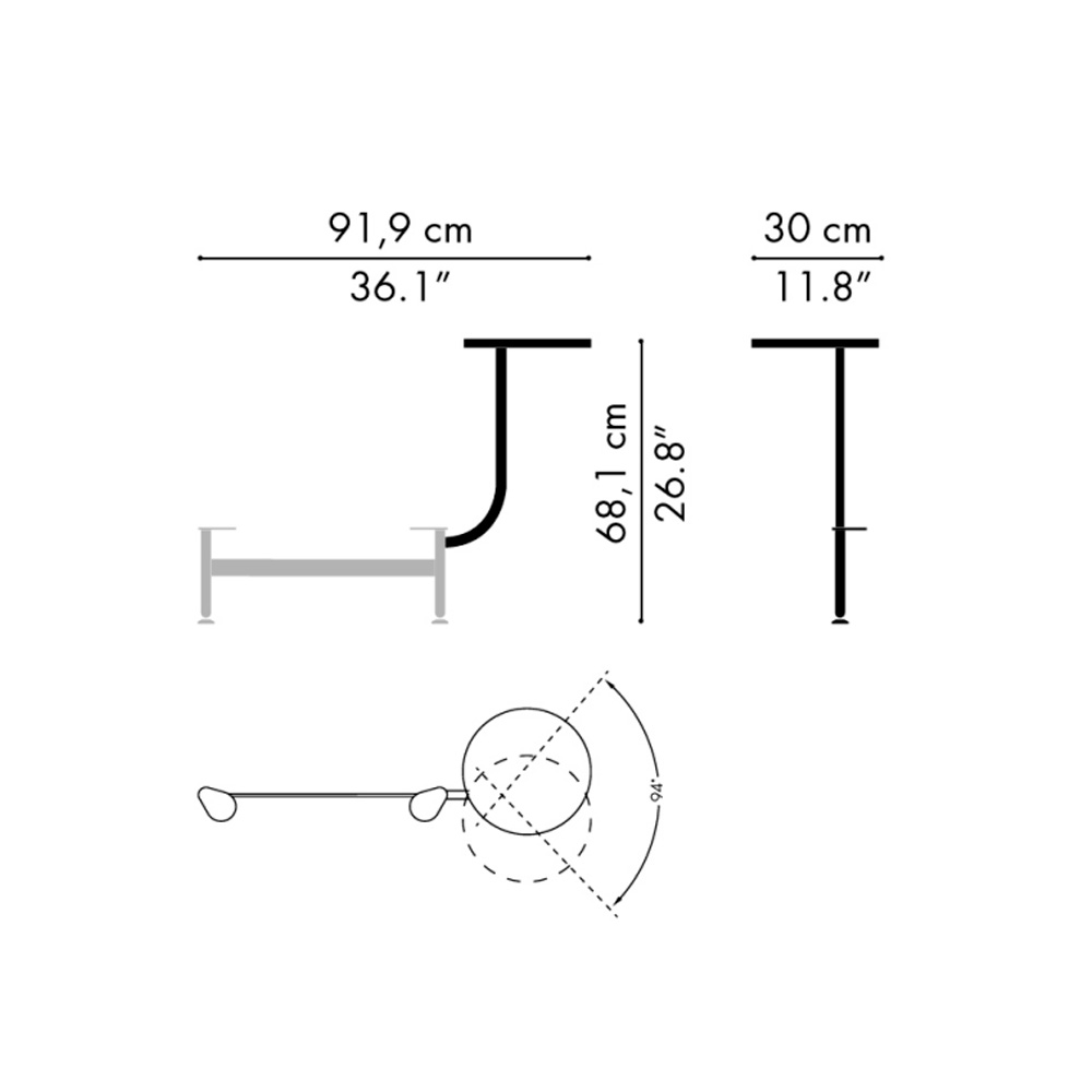 Mesa lateral: Ø30x91,9x68,1h cm. (Opcional)