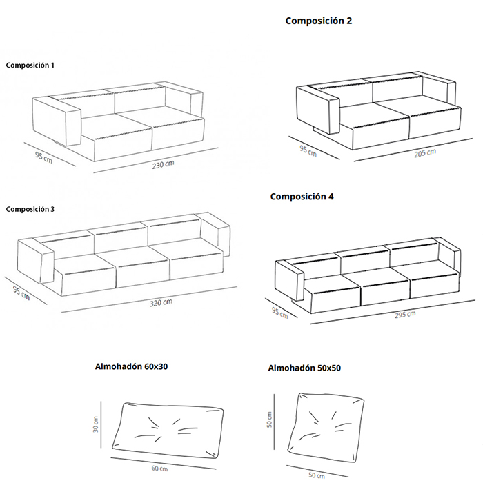 Sofá tapizado de 2 o 3 plazas y con brazos finos o anchos. Diseño: Victor Carrasco.