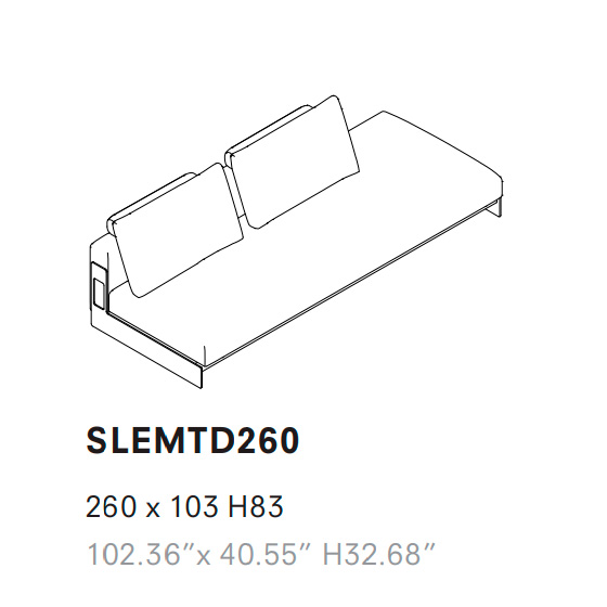 El sofá moderno Sledd nace de un diseño tranquilo pero contundente, construido con volúmenes geométricos puros que le dan un elegante cariz arquitectónico.