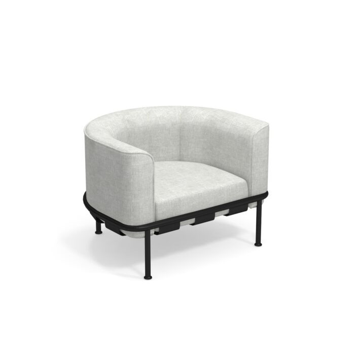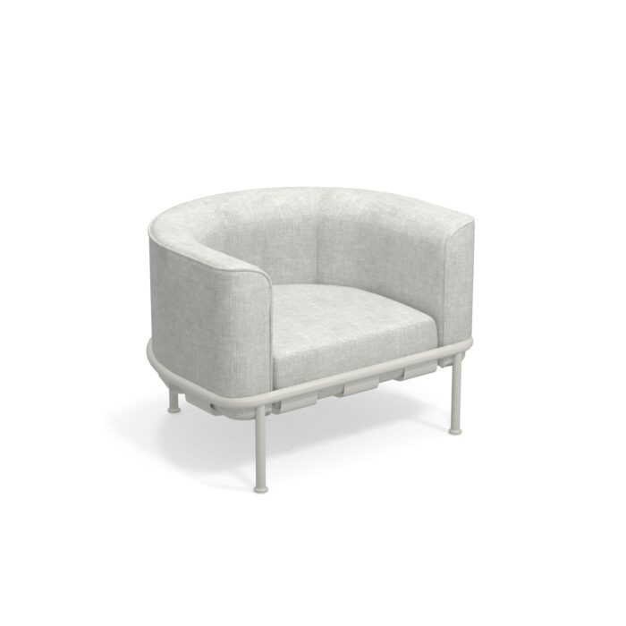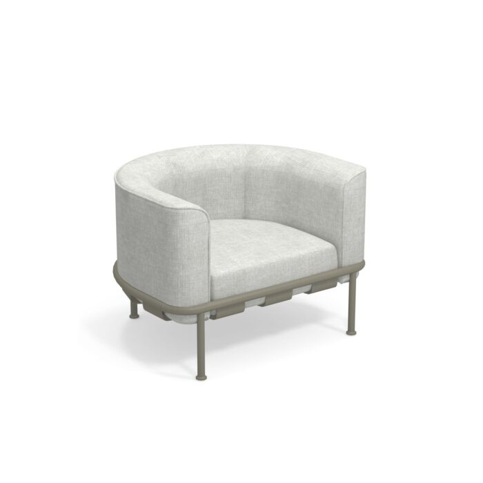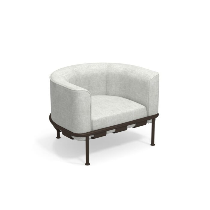 Sillón confort de aluminio barnizado y respaldo redondeado. Dimensiones: 103x83x72h cm.