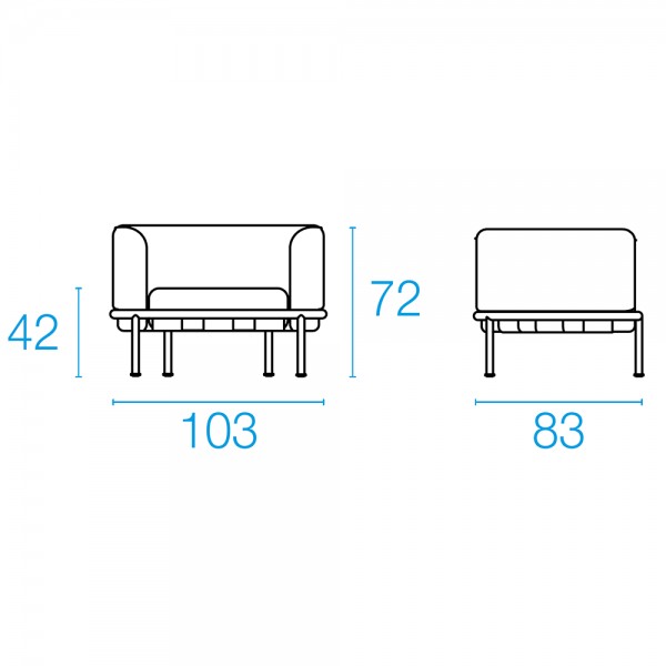 Dimensiones: 103x83x72h cm (Altura asiento: 42h cm).