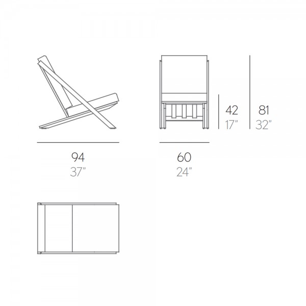 Es una butaca de diseño producida con perfilería de aluminio soldado disponible en distintos colores de termolacado, que bien combinados con la tapicería de las colchonetas y de los cojines, pueden aportar distinción y frescura a cualquier espacio exterior.