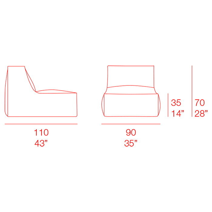 Incluso juntando varios modelos de Mareta se puede conseguir un sofá. No obstante, aunque esta es la versión con dimensiones de generoso sillón individual, también tenemos otro modelo XL con el tamaño de un dos plazas. Y si lo que buscas es crear un espacio con ritmo en cuanto a formas, lo puedes mezclar también con los sillones bean bag de la serie Sail.