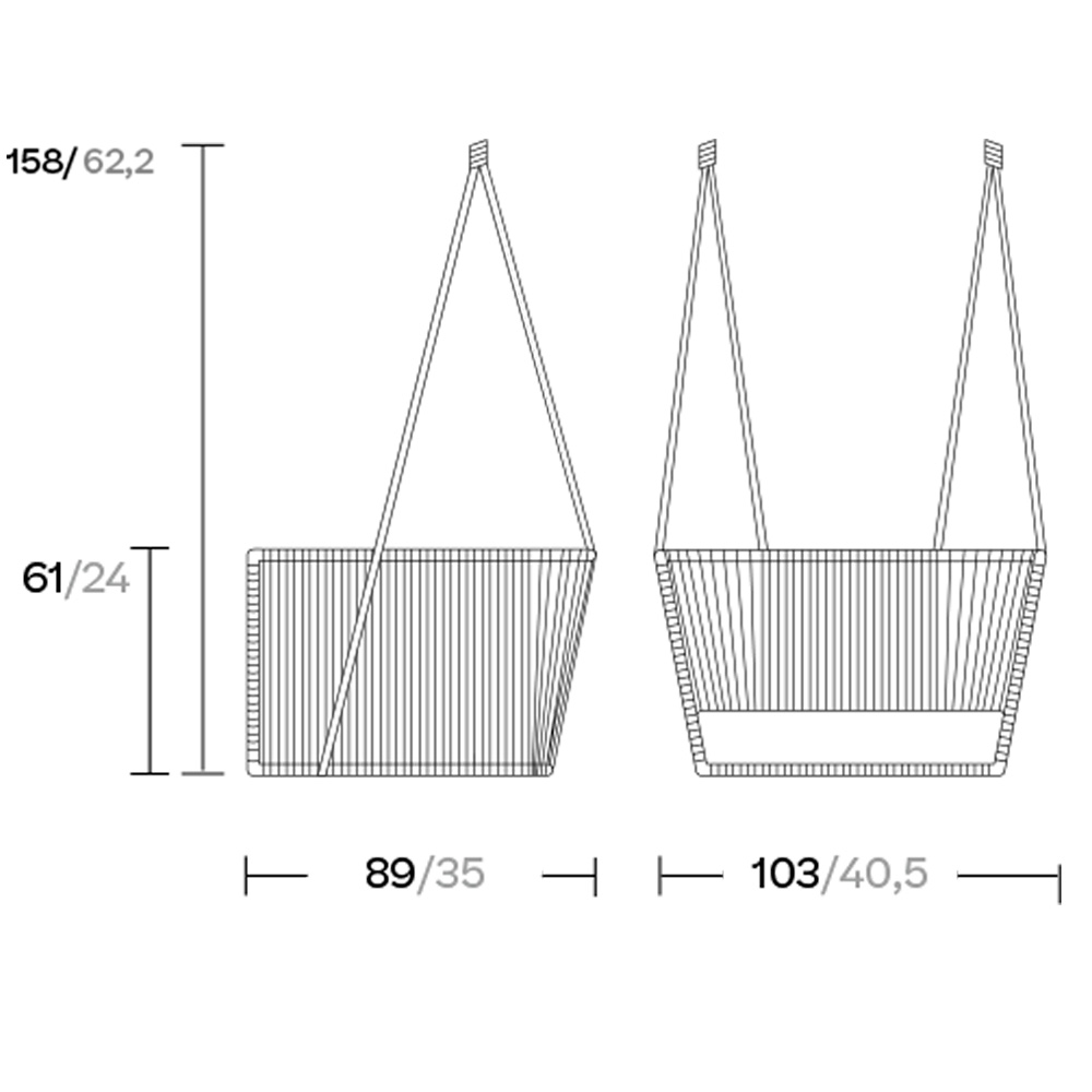 Columpio club con brazos y estructura en fibra sintetica Bela Rope, de la colección Bitta de Kettal, resistente a cargas pesadas.