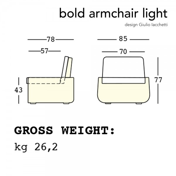Sillón exterior en base redondeada con luz. Dimensiones: 85x78x77h cm.