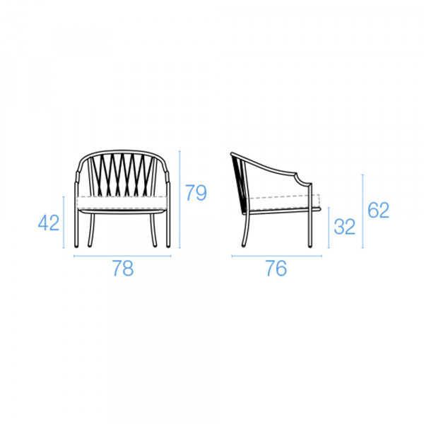 Dimensiones del sillón: 78x76x79h cm (Altura del asiento 42h cm).