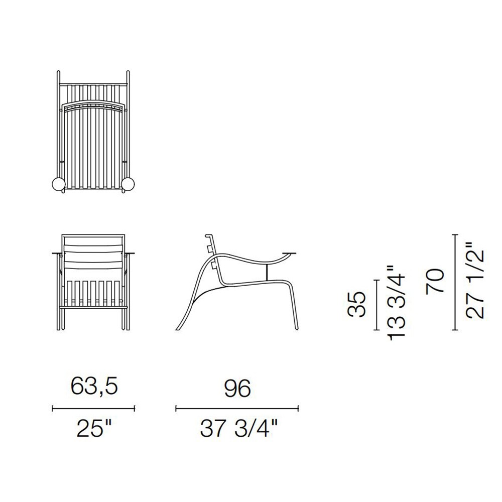 Butaca relax en metal. Los apoyabrazos están equipados con bandejas para bebidas.