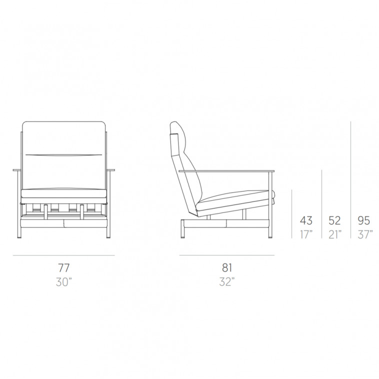 Con reminiscencias a los muebles de oficina y la comodidad y acabados de los muebles de interior, es una butaca de jardín fabricada con chapa de aluminio ondulado soldado cuya comodidad reside en la colchoneta rellena de gomaespuma de poliuretano recubierto con tejido hidrófugo.