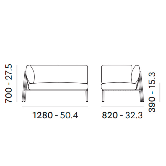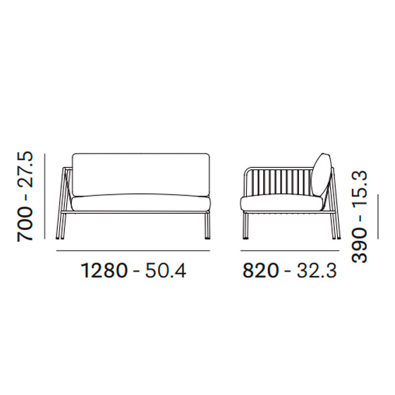 El sofá de terraza Nolita es un sofá de exterior de formas sencillas e icónicas, diseñado para disfrutar de momentos en compañía y relax al aire libre.