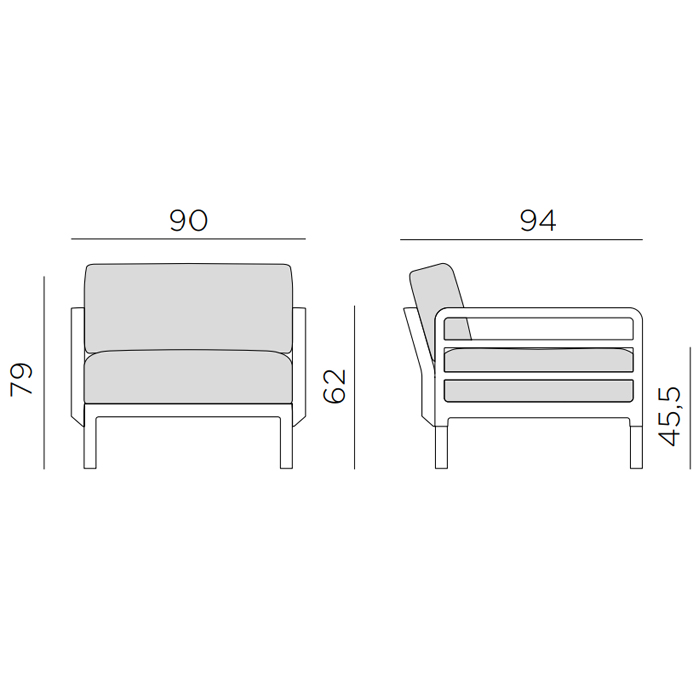 Butaca de exterior con estructura de polipropileno. Dimensiones: 90x94x79h cm.
