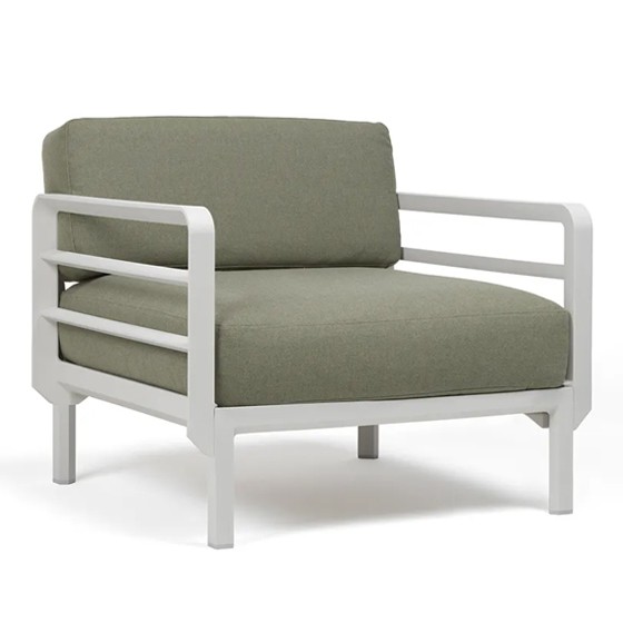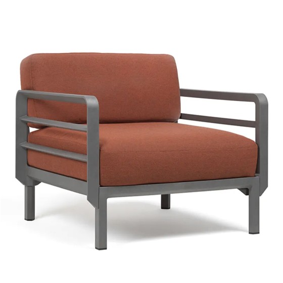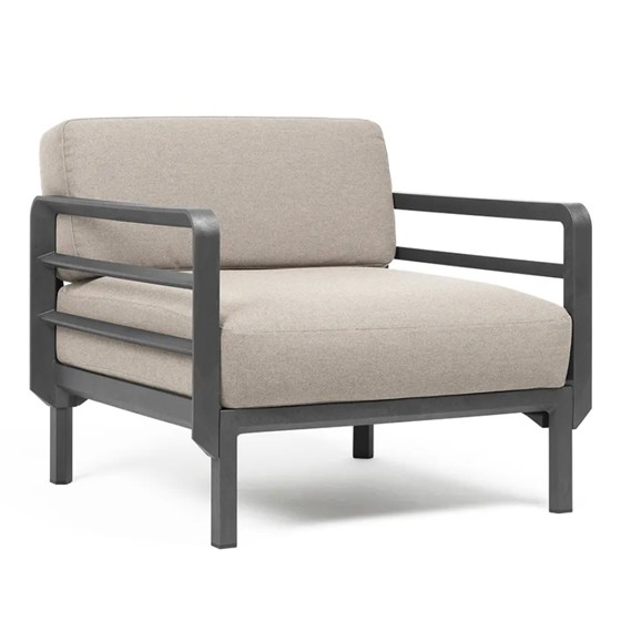 Butaca Maximo con estructura de resina regenerada y telas con un alto contenido reciclado. Se puede comprar por separado o ser incorporado como elemento del sofá modular Maximo.