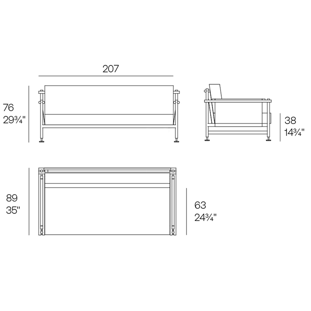 Sofá de exterior tapizado con estructura de aluminio. Dimensiones: 207x89x76h cm.