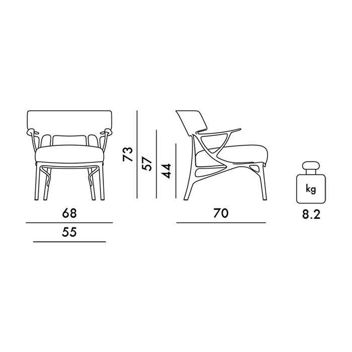 El Sillón A.I. Lounge es la nueva incorporación a la familia A.I., combinando materiales sostenibles y confort con una identidad gráfica futurista. Este sillón de salón destaca por sus líneas distintivas que se mezclan con el máximo confort del asiento. Disponible en blanco, negro, verde, naranja y gris, en versiones con y sin cojín, es ideal para uso interior y exterior.