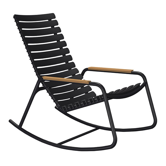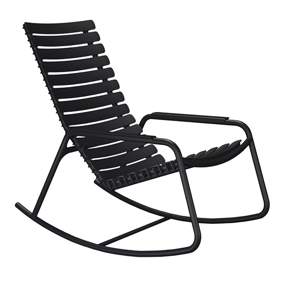 La ReCLIPS Rocking Chair forma parte de una colección de sillas de exterior con amplias láminas, fabricadas a partir de un 97% de residuos plásticos domésticos y producidas en Dinamarca.